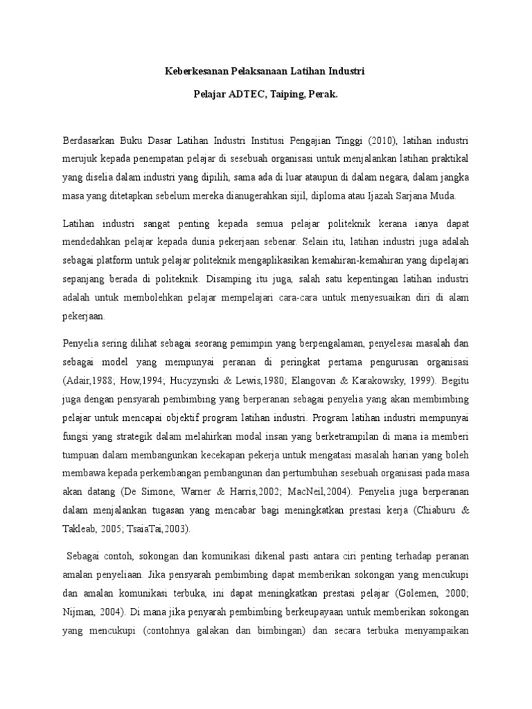 Kepentingan Latihan Industri Kepada Pelajar Pdf